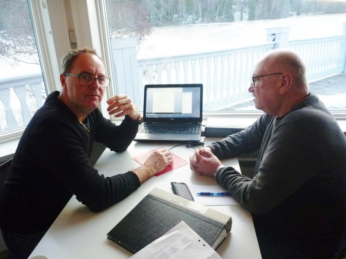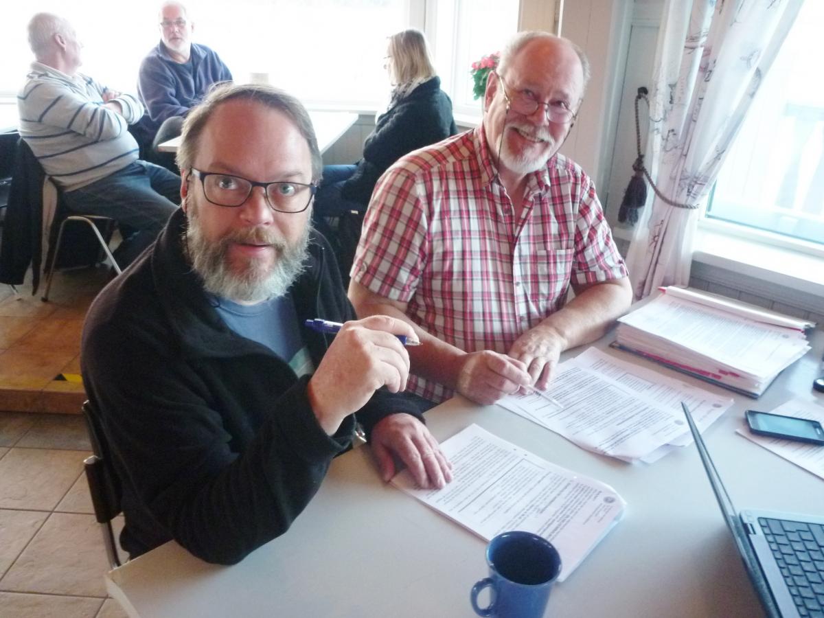 Den nyvalda sekreteraren Johan Ryd informeras av avgående sekreterare Allan Bertvald.